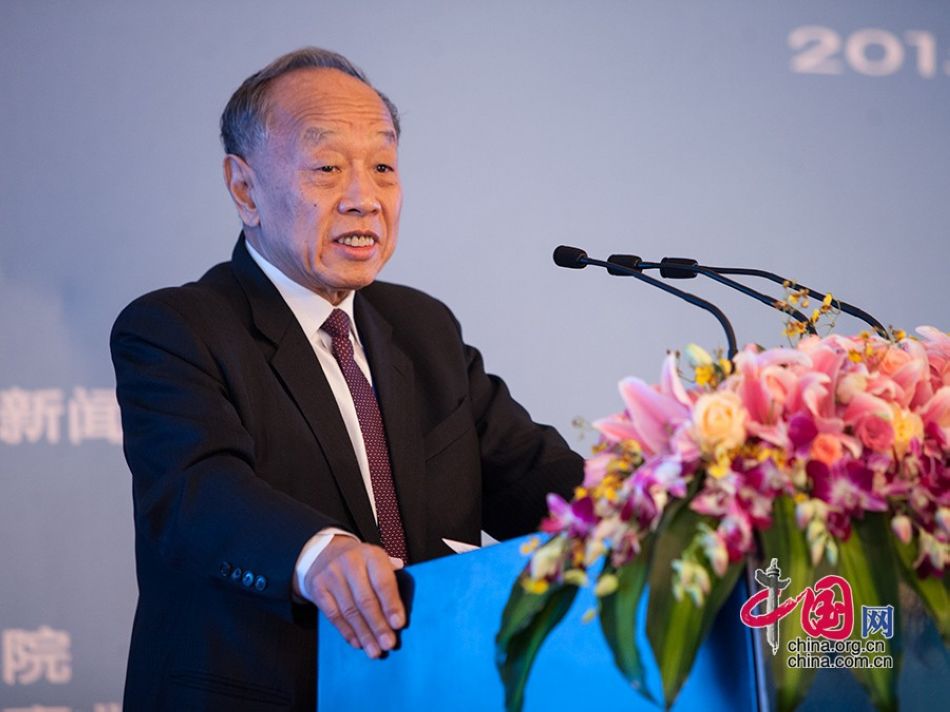 圖為中國(guó)公共外交協(xié)會(huì)會(huì)長(zhǎng)、外交部原部長(zhǎng)李肇星在“21世紀(jì)海上絲綢之路國(guó)際研討會(huì)”高峰論壇發(fā)表演講。中國(guó)網(wǎng)記者 鄭亮 攝