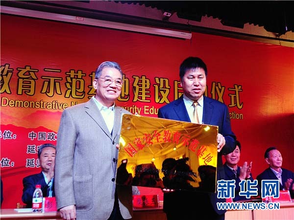 ????新華網(wǎng)延安5月12日電(記者 郝斐然)中國(guó)政策科學(xué)研究會(huì)國(guó)家安全政策委員會(huì)12日在陜西省延安市為延安中學(xué)“國(guó)家安全教育示范基地”授牌。第十一屆全國(guó)政協(xié)副主席、中國(guó)政策科學(xué)研究會(huì)國(guó)家安全政策委員會(huì)名譽(yù)會(huì)長(zhǎng)李金華為延安中學(xué)頒發(fā)“國(guó)家安全教育示范基地”牌匾。