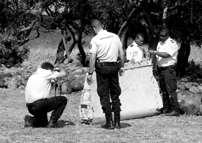 7月29日,在法屬留尼汪島,警察查看一塊飛機(jī)殘骸。新華社發(fā)