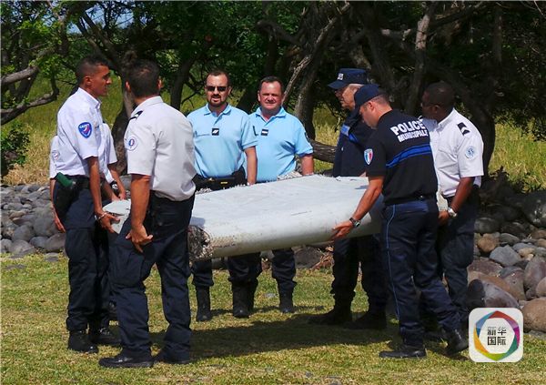 圖為2015年7月29日,在法屬留尼汪島,警察搬運一塊飛機殘骸。圖片來源:新華/路透