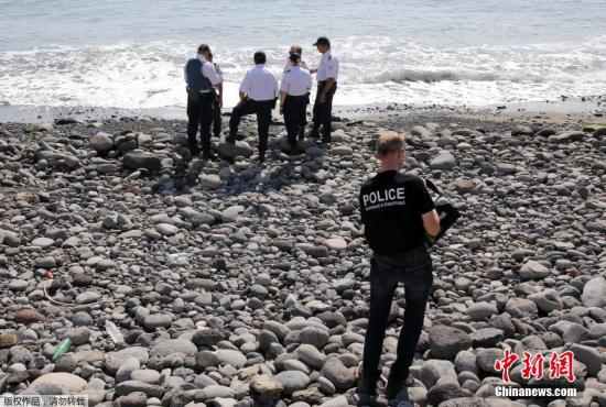 當(dāng)?shù)貢r(shí)間8月2日,法屬留尼旺首府圣但尼附近的一處海灘上,警員正在現(xiàn)場(chǎng)對(duì)金屬殘片進(jìn)行勘察。