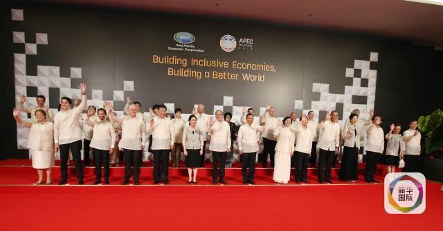 11月18日,國家主席習近平在菲律賓馬尼拉出席亞太經(jīng)合組織第二十三次領(lǐng)導人非正式會議歡迎晚宴。這是晚宴前,習近平同各成員經(jīng)濟體領(lǐng)導人、代表及配偶合影。(新華社記者姚大偉攝)