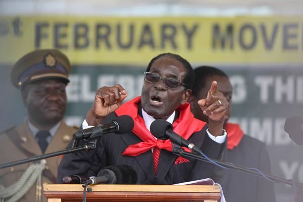 2015年2月28日,總統(tǒng)穆加貝在民眾為他舉行的91歲生日慶典上講話。新華社發(fā)(費列蒙攝)