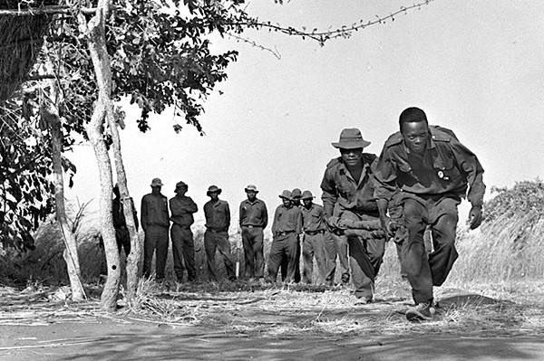 1970年,津巴布韋游擊隊(duì)?wèi)?zhàn)士練習(xí)戰(zhàn)場(chǎng)救護(hù)的資料圖片。(新華社發(fā))