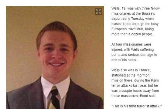 威爾斯的父親告訴媒體,去年巴黎的恐襲時(shí),威爾斯剛好也在法國(guó)進(jìn)行傳教任務(wù),而在2013年4月的波士頓馬拉松爆炸時(shí)他恰好也在案發(fā)現(xiàn)場(chǎng),這次在比利時(shí)所遇的,是他第三次碰到恐怖攻擊。