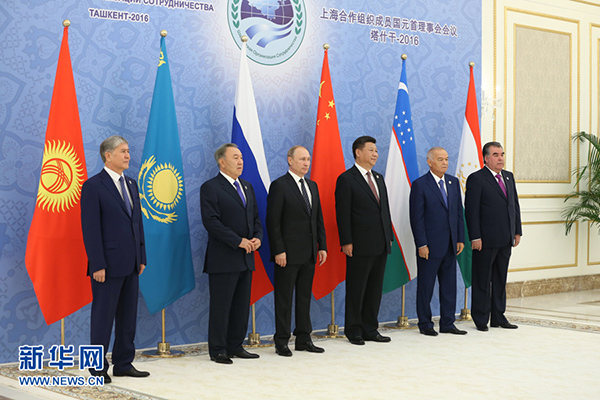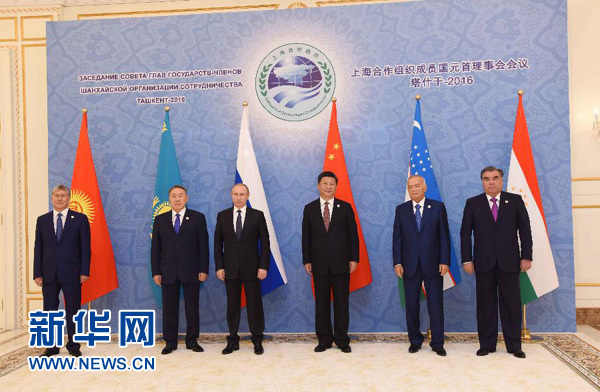 新華社塔什干6月24日電(記者陳贄 霍小光 駱珺)24日,上海合作組織成員國元首理事會第十六次會議在烏茲別克斯坦塔什干舉行。國家主席習(xí)近平同哈薩克斯坦總統(tǒng)納扎爾巴耶夫、吉爾吉斯斯坦總統(tǒng)阿坦巴耶夫、俄羅斯總統(tǒng)普京、塔吉克斯坦總統(tǒng)拉赫蒙、烏茲別克斯坦總統(tǒng)卡里莫夫出席會議。習(xí)近平在會上發(fā)表重要講話,強(qiáng)調(diào)要堅(jiān)定遵循上海合作組織根本宗旨和原則,牢牢把握發(fā)展大方向,動態(tài)調(diào)整各領(lǐng)域合作方略,確保本組織生機(jī)活力。