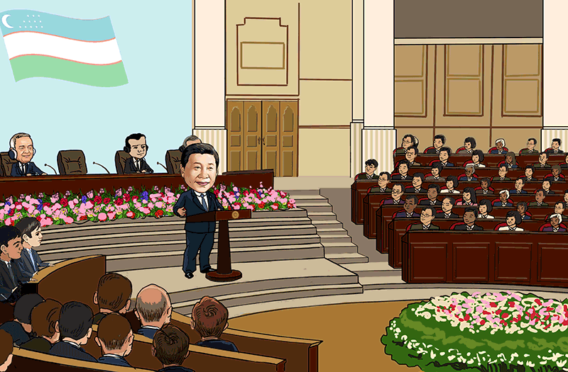 6月22日,正在烏茲別克斯坦訪問的國家主席習(xí)近平在塔什干烏茲別克斯坦最高會議立法院發(fā)表題為《攜手共創(chuàng)絲綢之路新輝煌》的重要演講,提出構(gòu)建互利合作網(wǎng)絡(luò)、共創(chuàng)新型合作模式、打造多元合作平臺、推進重點領(lǐng)域項目的新主張,為推動“一帶一路”向更高水平、更廣空間邁進指明了方向。當天,習(xí)主席和卡里莫夫總統(tǒng)在塔什干共同出席“安格連-帕普”鐵路隧道的通車視頻連線活動。