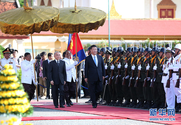 抵達金邊之前,習(xí)近平主席在當(dāng)?shù)刂髁鲌蠹垺都砥艺狻钒l(fā)表署名文章,用“肝膽相照的好朋友”“情同手足的好鄰居”形容中柬友誼。