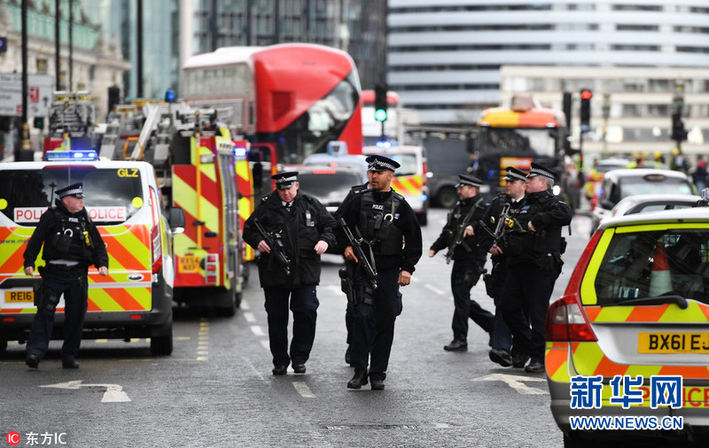 當(dāng)?shù)貢r(shí)間2017年3月22日,英國(guó)倫敦,英國(guó)威斯敏斯特議會(huì)大廈附近發(fā)生襲擊事件,威斯敏斯特橋上有車輛沖撞行人;另外有持刀歹徒攻擊議會(huì)大廈執(zhí)勤警察后被擊斃,報(bào)道稱多人受傷。襲擊發(fā)生后,議會(huì)大廈臨時(shí)關(guān)閉,英國(guó)議會(huì)下院的會(huì)議暫停。倫敦警方目前暫時(shí)將此事作為恐怖事件處理。據(jù)外媒報(bào)道,英國(guó)警方封閉了倫敦議會(huì)大廈周邊的街道。圖片來源:東方IC