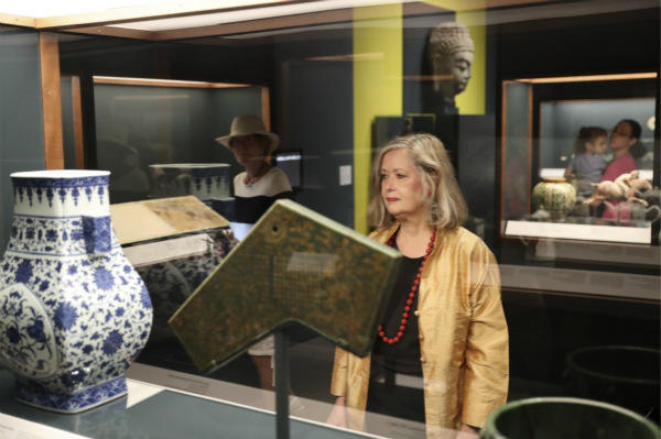 勞里·巴恩斯正在展館內(nèi)觀看中國(guó)文物。(新華社記者王迎攝)