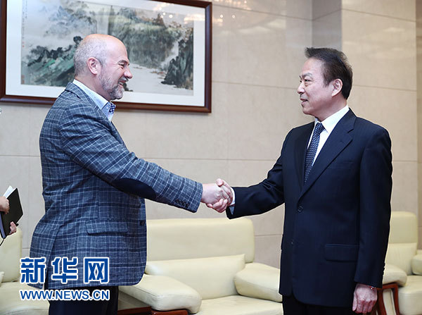 6月6日,新華社總編輯何平在北京會見今日俄羅斯電視臺執(zhí)行總編輯尼科洛夫。 新華社記者鞠鵬攝