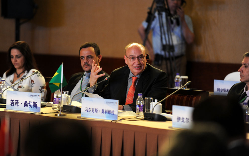 金磚國家媒體高端論壇開幕式6月8日在北京舉行。圖為論壇共同主席、巴西金融資訊集團總裁若澤·桑切斯發(fā)表講話。 新華網(wǎng) 孫韜 攝