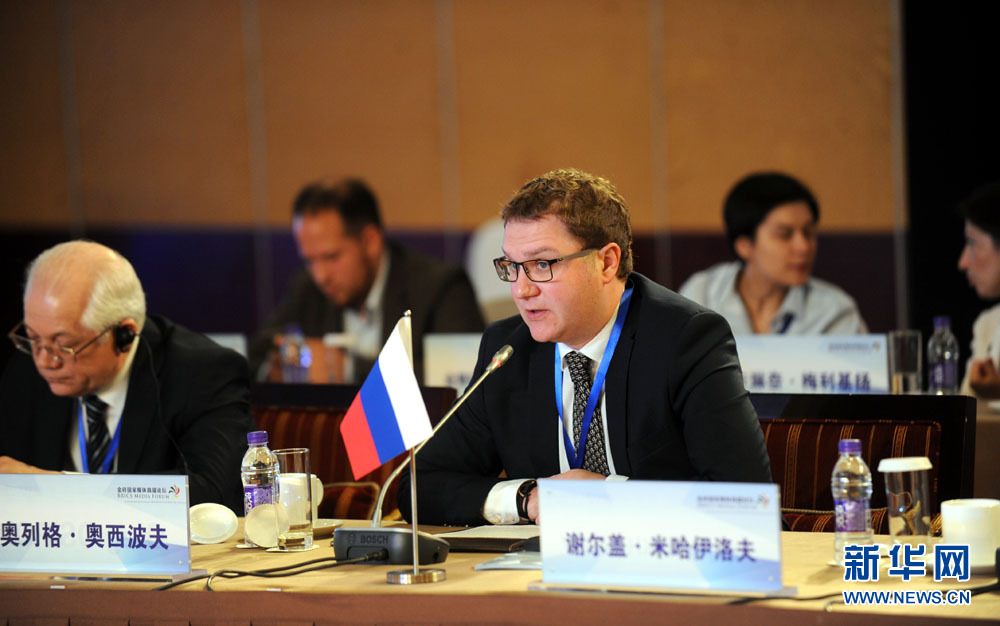 金磚國(guó)家媒體高端論壇開(kāi)幕式6月8日在北京舉行。圖為論壇共同主席、俄羅斯衛(wèi)星通訊社第一副總編輯奧列格·奧西波夫發(fā)表演講。 新華網(wǎng) 孫韜 攝