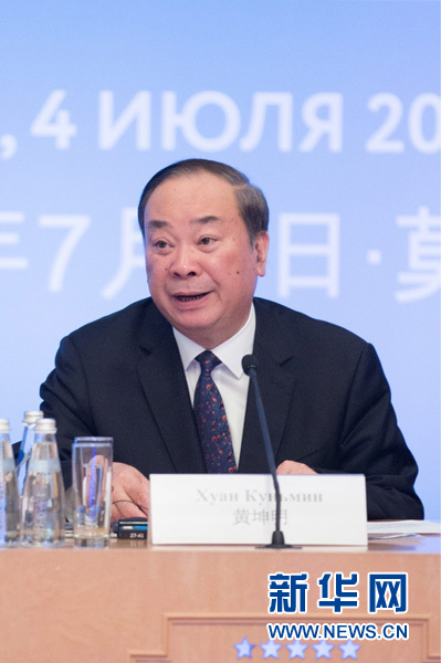 7月4日,中共中央宣傳部常務副部長黃坤明在第三屆中俄媒體論壇上發(fā)言。新華社記者 吳壯 攝