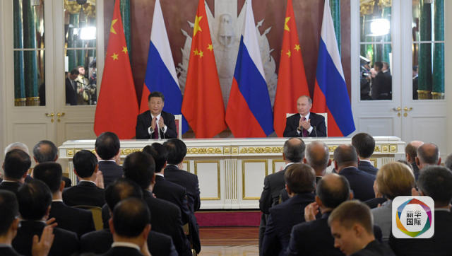 7月4日,國家主席習近平在莫斯科克里姆林宮同俄羅斯總統(tǒng)普京舉行會談。這是會談后,兩國元首共同出席簽字儀式。新華社記者 謝環(huán)馳 攝