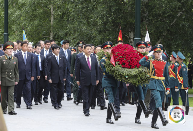 7月4日,國家主席習近平在莫斯科向俄羅斯無名烈士墓敬獻花圈。新華社記者 謝環(huán)馳 攝