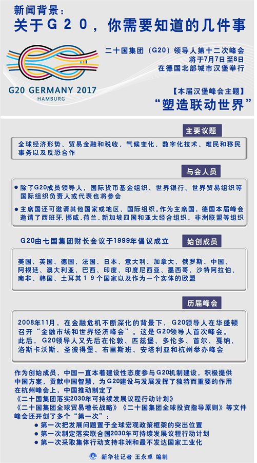 新華社德國漢堡7月6日電? 新聞背景:關(guān)于G20,你需要知道的幾件事