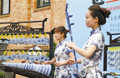 ??? 7月5日,“感知中國·匠心冶陶”景德鎮(zhèn)陶瓷文化展在柏林開幕,中方向德國觀眾奉獻了一場精彩的瓷樂表演。記者 管克江攝