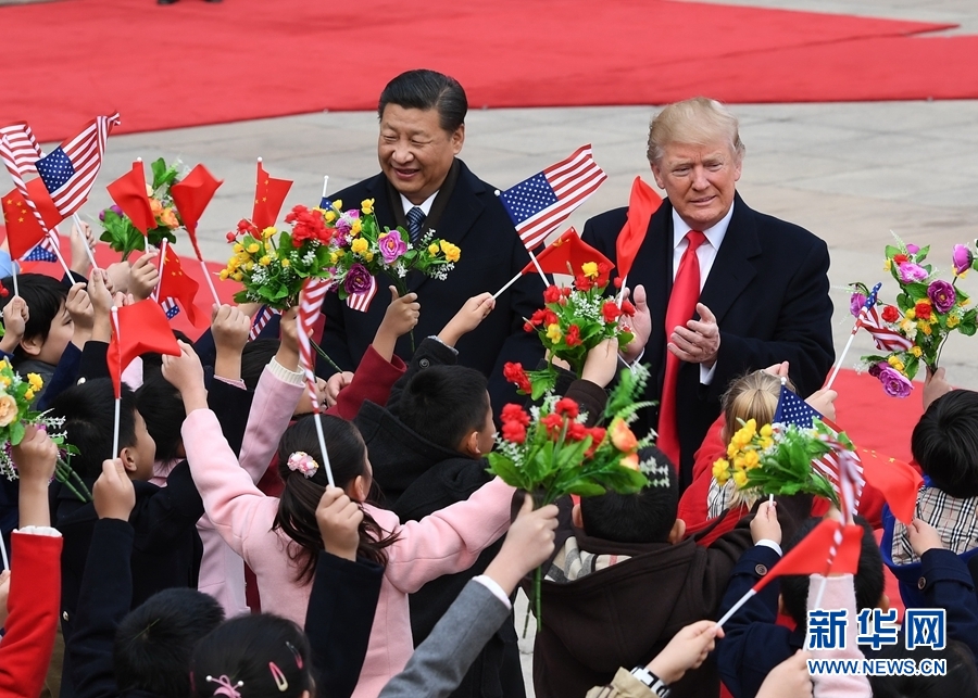 11月9日,國(guó)家主席習(xí)近平在北京人民大會(huì)堂東門外廣場(chǎng)舉行歡迎儀式,歡迎美利堅(jiān)合眾國(guó)總統(tǒng)唐納德·特朗普對(duì)中國(guó)進(jìn)行國(guó)事訪問。 新華社記者饒愛民 攝