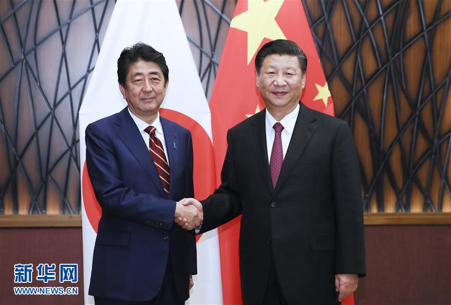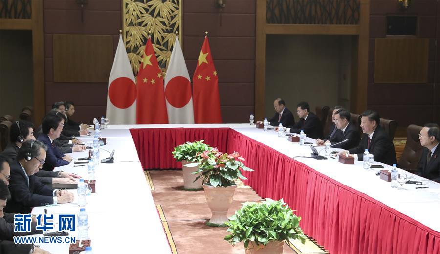 ? ?11月11日,國家主席習(xí)近平在越南峴港會見日本首相安倍晉三。新華社記者 蘭紅光 攝