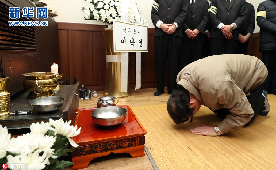 12月23日,韓國忠清北道堤川市,韓國總理李洛淵視察運動中心火災現(xiàn)場,并吊唁火災遇難者。據(jù)報道,21日,韓國忠清北道堤川市一運動中心發(fā)生火災,造成29死29傷,其中20名死者在火災發(fā)生時位于大樓2層的桑拿房內(nèi)。近日,韓媒公布了火災現(xiàn)場的一組照片。照片顯示,桑拿房堆積了各種洗浴用品,應急出口幾乎被封死。(圖片來源:東方IC)