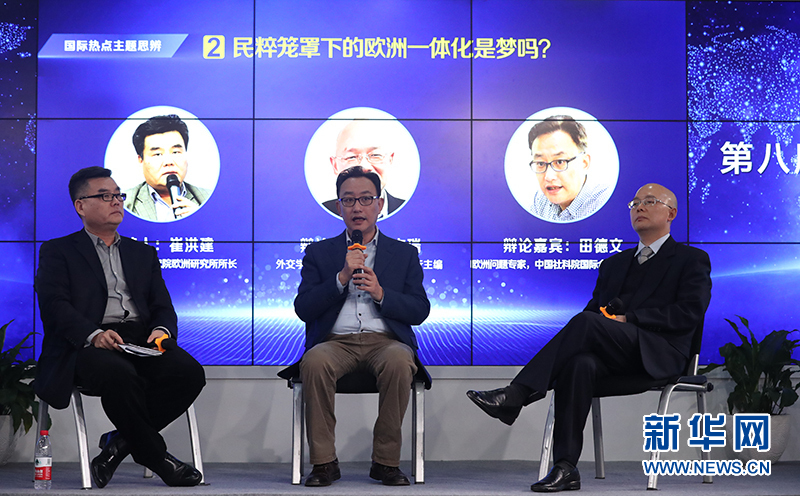 12月26日,新華網(wǎng)第八屆“縱論天下”國際問題研討會成功舉行。圖為中國社科院國際合作局副局長、歐洲問題專家田德文在發(fā)言。新華網(wǎng)發(fā)(郭小天攝)。