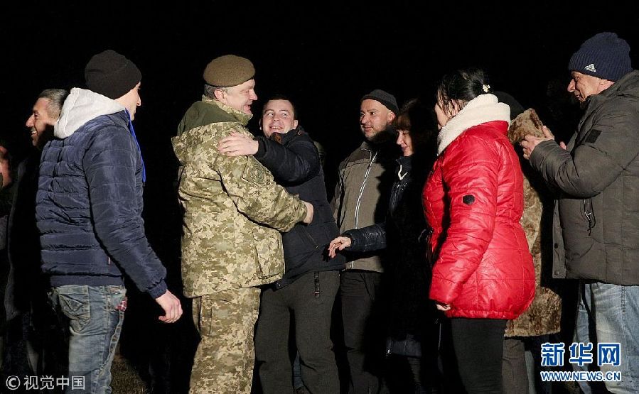 12月27日,烏克蘭哈爾科夫,獲釋戰(zhàn)俘抵達(dá)哈爾科夫。烏克蘭政府軍與東部民間武裝當(dāng)日舉行了大規(guī)模的交換戰(zhàn)俘行動(dòng)。(圖片來(lái)源:視覺中國(guó))