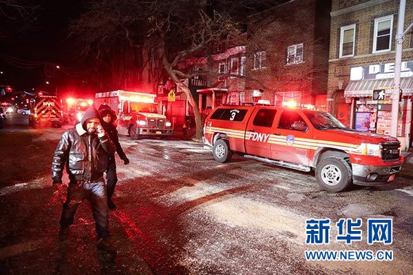 12月29日凌晨,人們從美國(guó)紐約布朗克斯區(qū)發(fā)生火災(zāi)的樓房附近經(jīng)過。新華社記者 王迎 攝