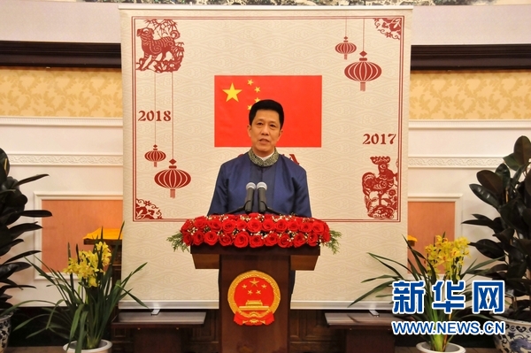 1月28日,在波蘭首都華沙,中國駐波蘭大使徐堅在新春招待會上致辭。當(dāng)日,中國駐波蘭大使館舉行新春招待會,在波華僑華人、中資機構(gòu)員工、漢語教師及留學(xué)生等數(shù)百人齊聚一堂,共迎新春。新華網(wǎng)發(fā) 石中玉攝