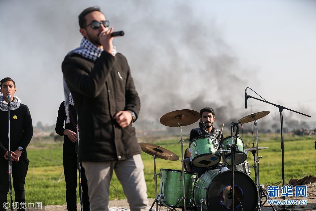 巴勒斯坦示威者與以士兵發(fā)生沖突 巴樂隊沖突中淡定開唱