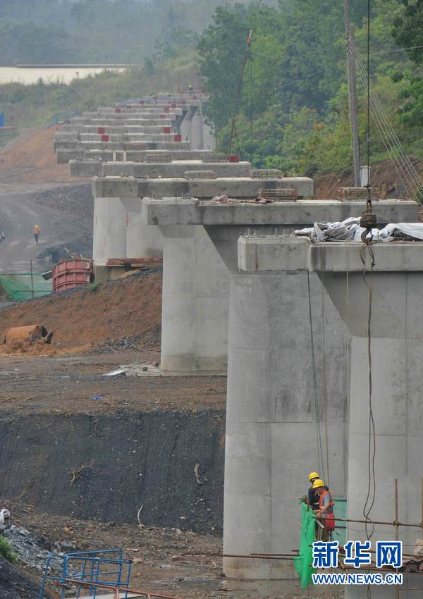 這是3月27日在老撾南塔省航拍的正在施工建設中的橋梁。新華網發(fā) 劉艾倫攝