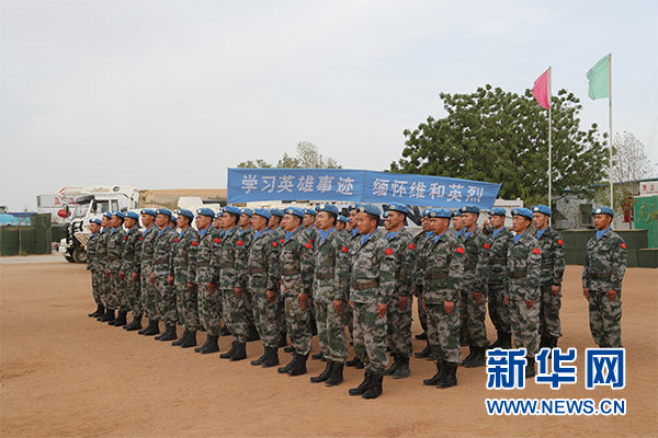 新華社喀土穆4月4日電(記者馬意翀 張康)中國第14批赴蘇丹達爾富爾維和工兵分隊官兵4日在蘇丹三塊任務(wù)區(qū)同時舉行“學(xué)習(xí)英雄事跡,緬懷維和英烈”祭奠儀式,深切緬懷為維護世界和平而犧牲的維和戰(zhàn)友。