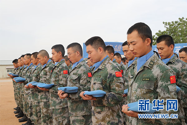 祭奠儀式上,大型機械鳴笛三聲,哀思樂曲響起,全體官兵整裝列隊,集體脫帽為犧牲在維和戰(zhàn)場上的英烈默哀三分鐘。隨后,官兵代表致辭,追憶維和英烈們無私奉獻、舍生取義的光輝事跡,表達為達爾富爾地區(qū)和平建設(shè)而努力奮斗的堅定決心。