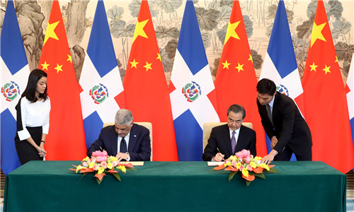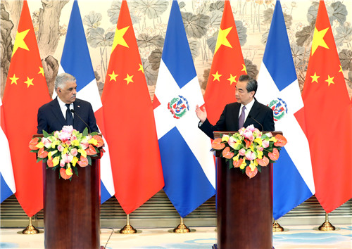 王毅表示,中國和多米尼加正式建交,標(biāo)志著兩國關(guān)系翻開了新的歷史篇章。從此,中國在拉美多了一位守望相助的好朋友,多米尼加在發(fā)展振興道路上有了一位互利合作的好伙伴,中多雙方將成為促進(jìn)南南合作、維護(hù)發(fā)展中國家共同利益的好兄弟。中國特色社會(huì)主義進(jìn)入了新時(shí)代,正在加快實(shí)現(xiàn)現(xiàn)代化進(jìn)程。同中國建交,意味著為多米尼加自身發(fā)展帶來前所未有的巨大機(jī)遇。隨著雙方合作潛力的不斷釋放,這一機(jī)遇將迅速轉(zhuǎn)化成現(xiàn)實(shí),為1000多萬多米尼加人民持續(xù)帶來實(shí)實(shí)在在的利益和福祉。多米尼加是中美洲和加勒比地區(qū)最大經(jīng)濟(jì)體,在地區(qū)事務(wù)中有著重要影響,中多建交也將為中國和拉美的整體合作注入新的動(dòng)力,開辟新的空間。