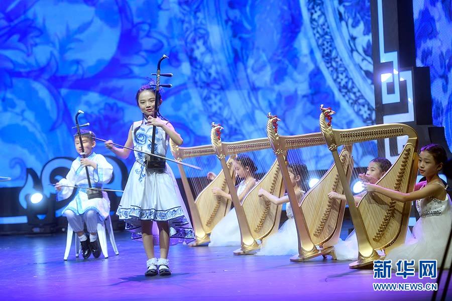 2017年8月22日,來自中國的青少年在北京舉行的2017年上合組織成員國青少年藝術(shù)展演上表演民樂合奏《國風(fēng)》。新華社記者 金良快 攝