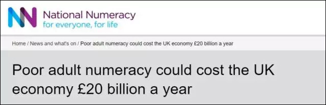 英國國家數(shù)學(xué)能力中心就曾“恨鐵不成鋼”地發(fā)布統(tǒng)計(jì)報(bào)告稱:英國成年人糟糕的數(shù)學(xué)水平會(huì)讓英國每年無意中損失200億英鎊。