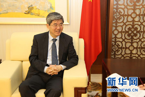 7月1日,中國駐保加利亞大使張海舟在索非亞中國駐保加利亞使館接受新華社記者專訪。 新華社記者 戰(zhàn)小漪 攝