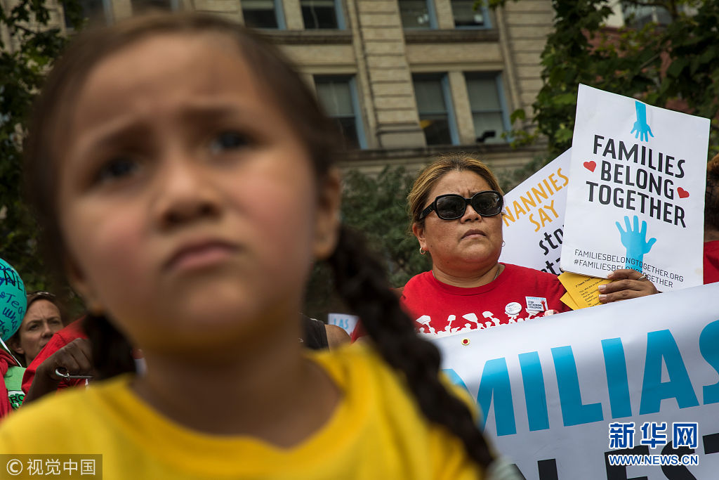 當(dāng)?shù)貢r(shí)間2018年7月18日,美國紐約,包括托兒所從業(yè)人員、父母及其子女在內(nèi)的社會(huì)各界人士在美國移民和海關(guān)執(zhí)法局(ICE)附近組織示威游行,抗議特朗普政府近期在美國南部邊境實(shí)施針對非法移民家庭的強(qiáng)制拘留和家庭成員離散政策。 當(dāng)天,共和黨領(lǐng)導(dǎo)的眾議院通過了支持ICE的決議,并譴責(zé)一些民主黨人和進(jìn)步積極分子要求廢除ICE的呼聲。(圖片來源:視覺中國)