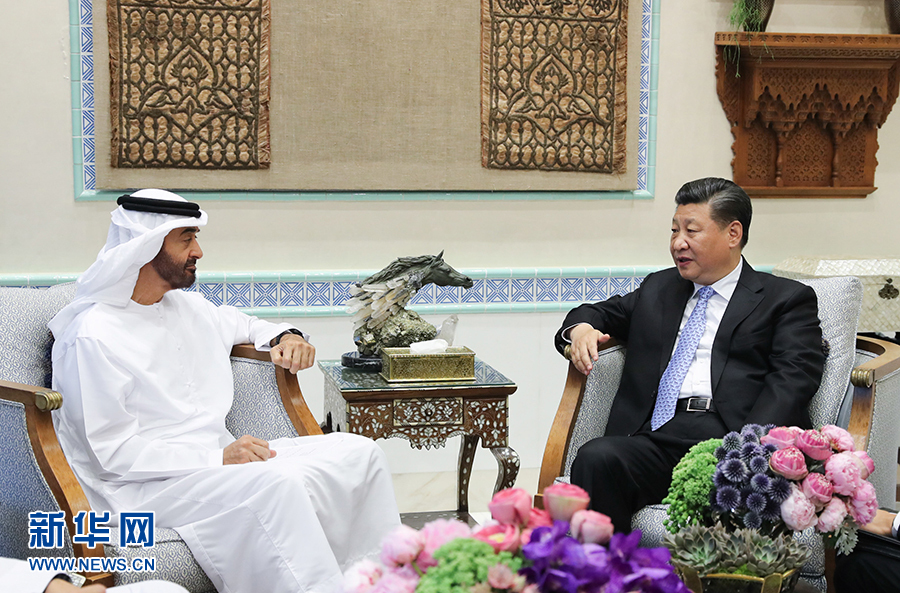 7月20日晚,國家主席習(xí)近平應(yīng)阿聯(lián)酋阿布扎比王儲(chǔ)穆罕默德邀請(qǐng),到王儲(chǔ)官邸作客。雙方在輕松友好氣氛中就中阿關(guān)系以及共同關(guān)心的問題深入交換意見。 新華社記者 謝環(huán)馳 攝