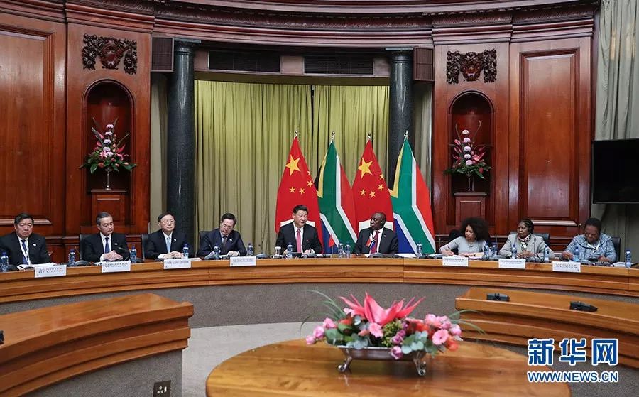 ▲7月24日,國家主席習(xí)近平在比勒陀利亞同南非總統(tǒng)拉馬福薩舉行會(huì)談。 (新華社)
