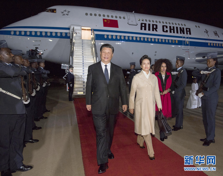 7月23日,國(guó)家主席習(xí)近平抵達(dá)比勒陀利亞,開(kāi)始對(duì)南非共和國(guó)進(jìn)行國(guó)事訪問(wèn)。習(xí)近平和夫人彭麗媛在機(jī)場(chǎng)受到南非外長(zhǎng)西蘇魯?shù)日呒?jí)官員熱情迎接。新華社記者李學(xué)仁攝