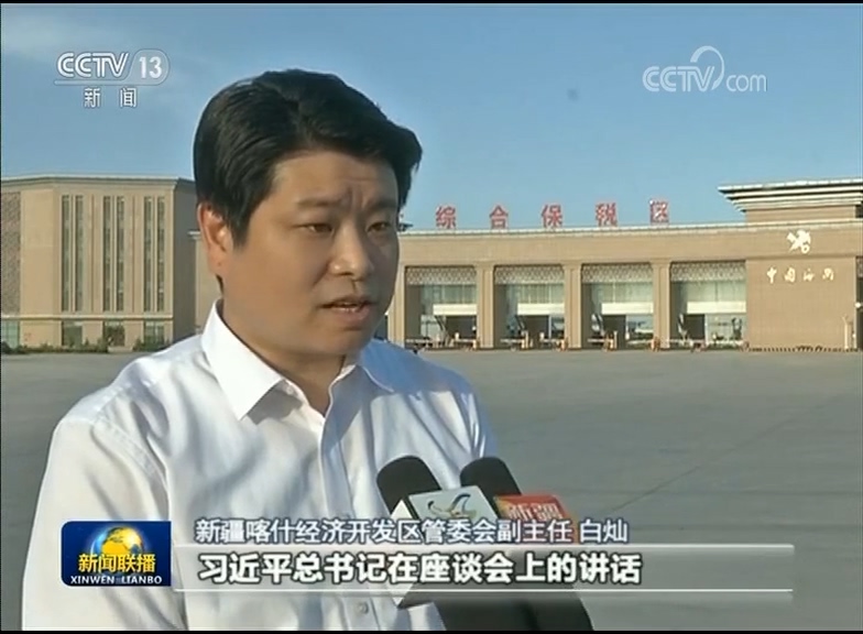 新疆喀什經(jīng)濟(jì)開(kāi)發(fā)區(qū)管委會(huì)副主任 白燦:習(xí)近平總書(shū)記在座談會(huì)上的講話(huà),為我們做好下一階段“一帶一路”工作提供了根本的遵循。我們將和周邊沿線(xiàn)國(guó)家按照“共商、共建、共享”的原則,共同推動(dòng)跨國(guó)的基礎(chǔ)設(shè)施建設(shè)的互聯(lián)互通。