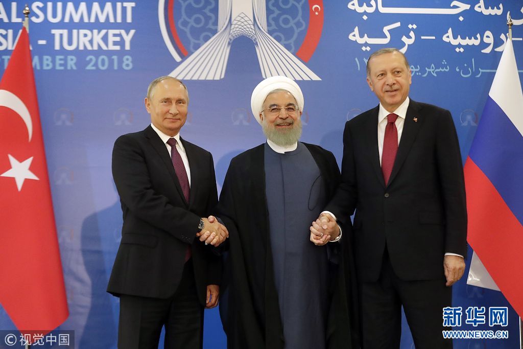 當(dāng)?shù)貢r(shí)間2018年9月7日,伊朗德黑蘭,當(dāng)日,俄羅斯、土耳其和伊朗三國首腦齊聚伊朗首都德黑蘭舉行峰會,討論
