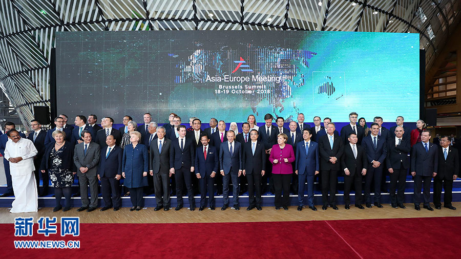 當(dāng)?shù)貢r間10月19日上午,國務(wù)院總理李克強(qiáng)在布魯塞爾出席第十二屆亞歐首腦會議。這是與會領(lǐng)導(dǎo)人合影。 新華社記者 丁海濤 攝