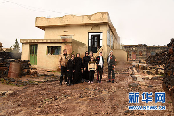 在敘利亞南部蘇韋達(dá)省舍比克村,阿布·阿馬爾一家站在自家房前合影(11月14日攝)。新華社發(fā)(胡馬姆 攝)