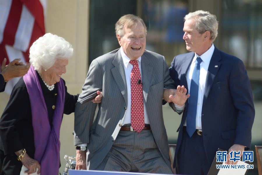 美國(guó)前總統(tǒng)喬治·赫伯特·沃克·布什辦公室11月30日晚發(fā)表聲明證實(shí)他于美國(guó)中部時(shí)間當(dāng)晚10時(shí)許去世,享年94歲。這是2013年4月25日,在美國(guó)達(dá)拉斯,美國(guó)前總統(tǒng)喬治·赫伯特·沃克·布什(中)出席小布什總統(tǒng)圖書館落成典禮的資料照片。新華社發(fā)(許迅攝)
