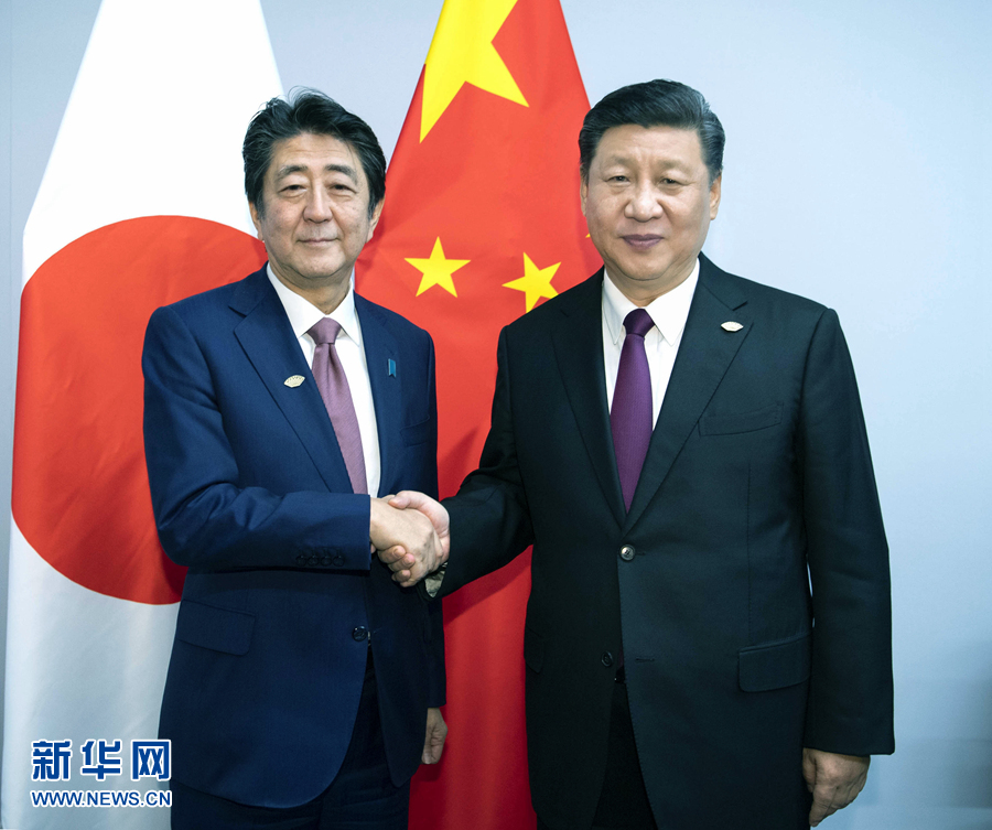 ——會(huì)見日本首相安倍晉三,指出雙方要建設(shè)性地把握好中日關(guān)系發(fā)展方向,在中日四個(gè)政治文件原則基礎(chǔ)上,共同開辟兩國(guó)關(guān)系新前景。
