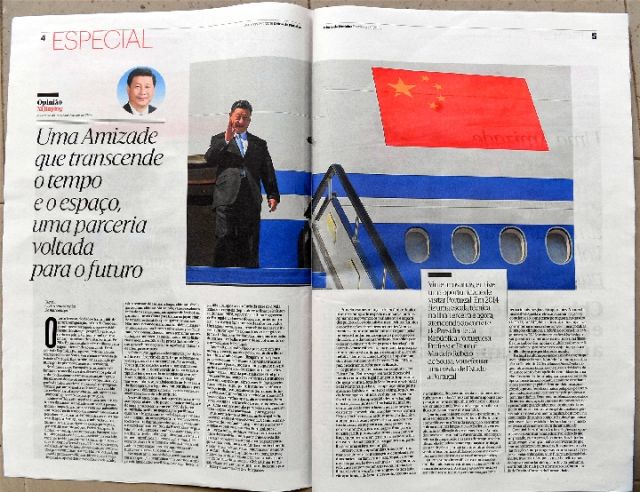 在對(duì)葡萄牙進(jìn)行國(guó)事訪問(wèn)前夕,習(xí)近平主席在葡萄牙《新聞日?qǐng)?bào)》發(fā)表題為《跨越時(shí)空的友誼 面向未來(lái)的伙伴》的署名文章。(新華社記者章亞?wèn)|、孫奕攝)