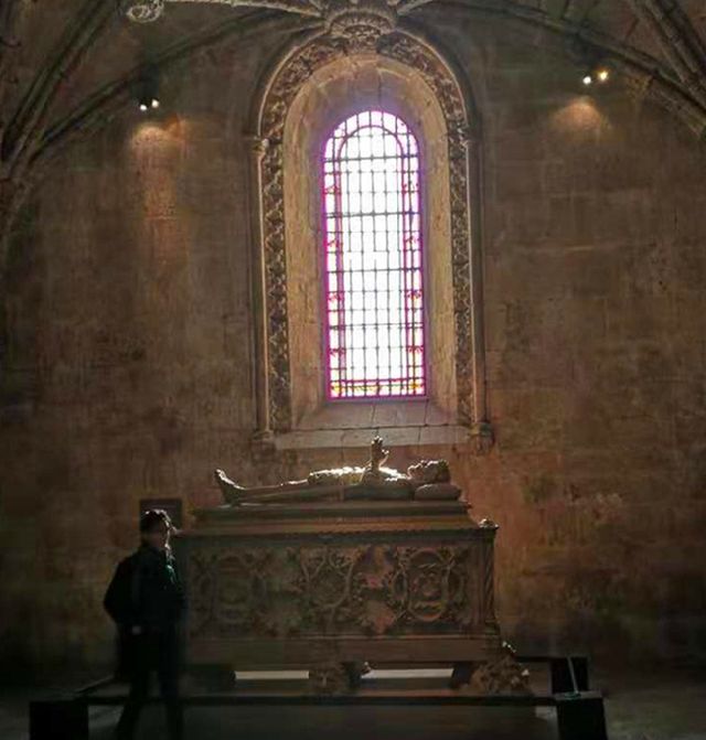 安放于里斯本熱羅尼姆斯教堂的卡蒙斯之墓。(新華社記者錢彤?dāng)z)
