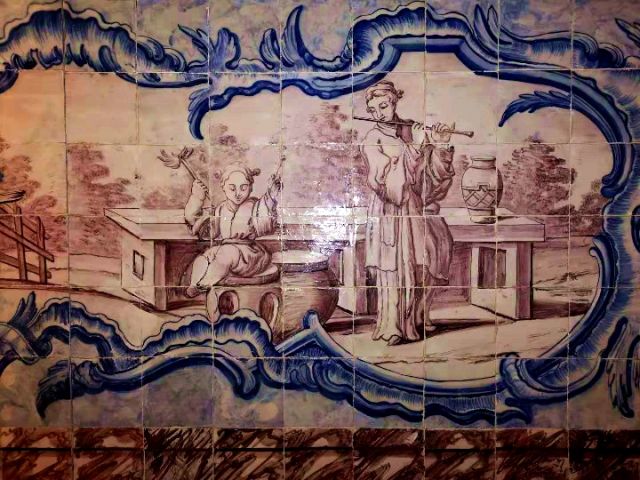 葡萄牙瓷磚畫展現(xiàn)的中國(guó)人生活場(chǎng)景。(新華社記者錢彤?dāng)z)